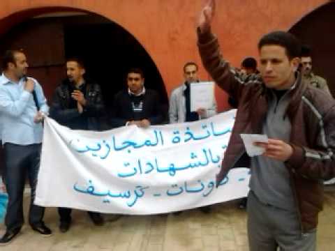 فيديو وقفة احتجاجية للأساتذة المقصيين من الترقية بالإجازة أمام نيابة تاونات